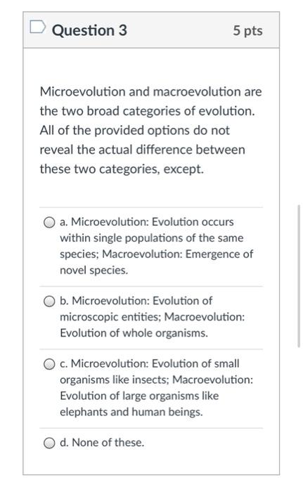 Solved Question 3 5 Pts Microevolution And Macroevolution Chegg Com